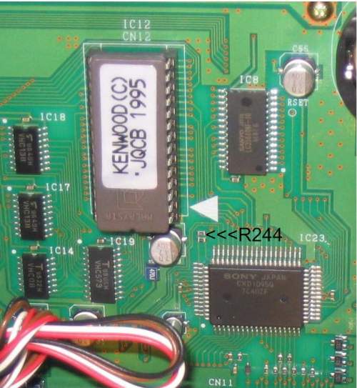 IC12 ROM and above IC23. There are two chip resistors, one on