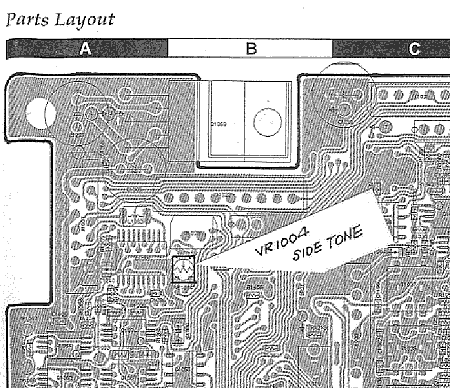 Please align the side tone level with VR-1004 on the MAIN unit. For your reference, we attach a file showing the location of VR-1004.